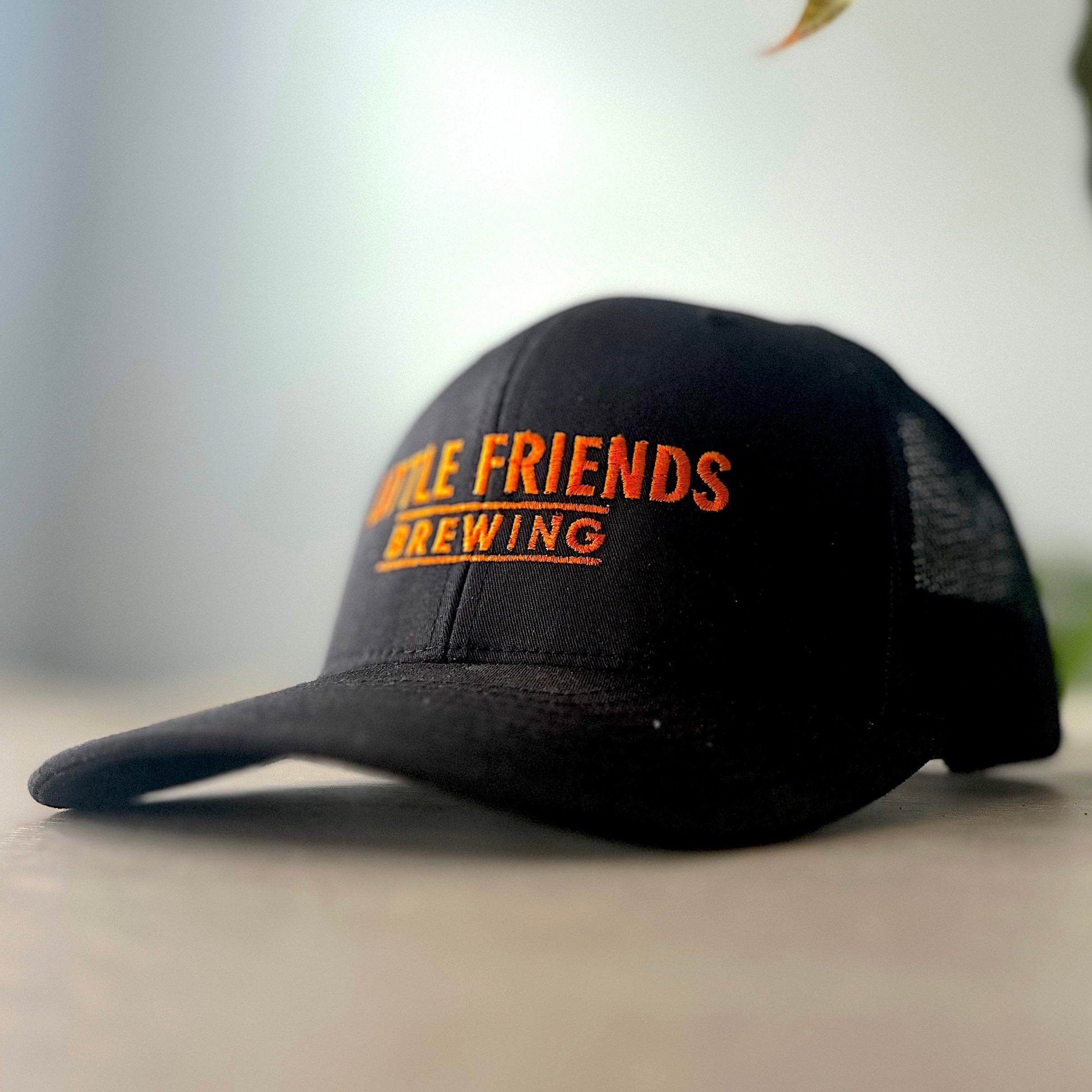 Black & Black Mesh Little Friends Adjustable Hat with Orange Stitching